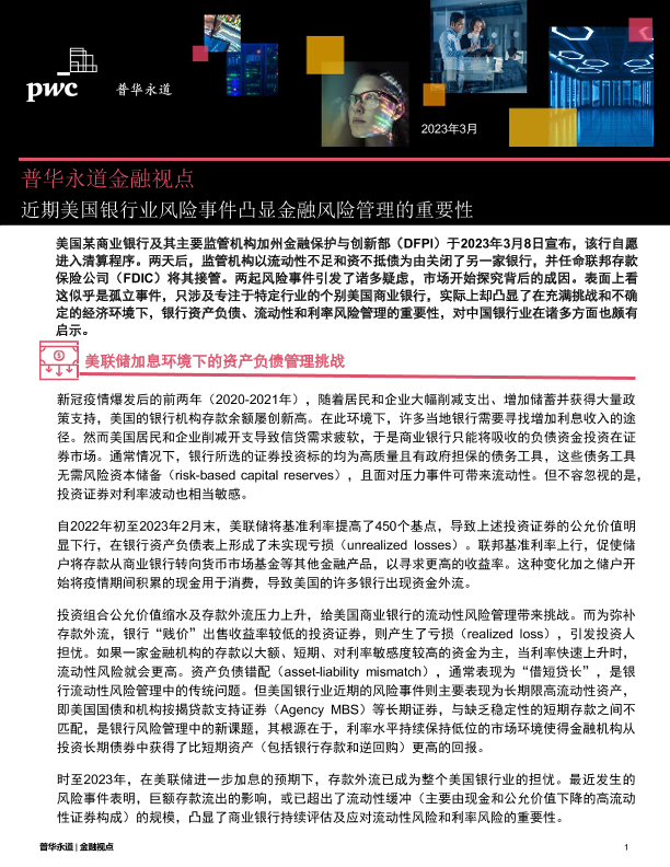 【普华永道】【202303】近期美国银行业风险事件凸显金融风险管理的重要性-5页