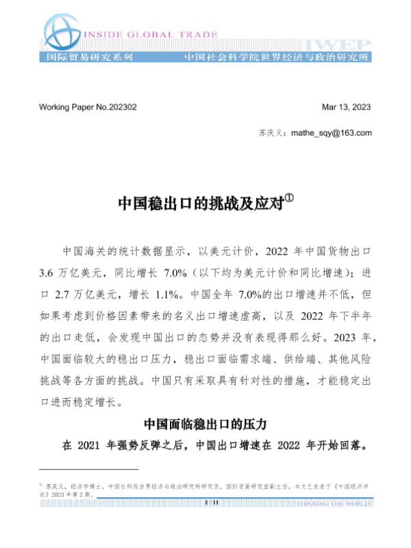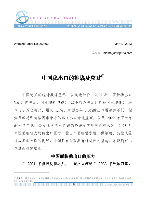 【中国社科院世界经济与政治研究所】【20230313】中国稳出口的挑战及应对-11页