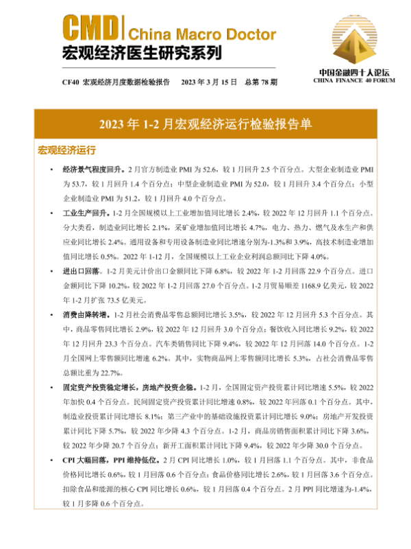【金融四十人论坛】【20230315】2023年1-2月宏观经济运行检验报告单-6页