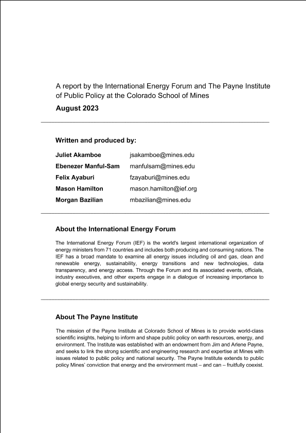 International Energy Forum and The Payne Institute of Public Policy at the Colorado School of Mines 电力热力燃气水生产 2023年 PDF 5.13 MB