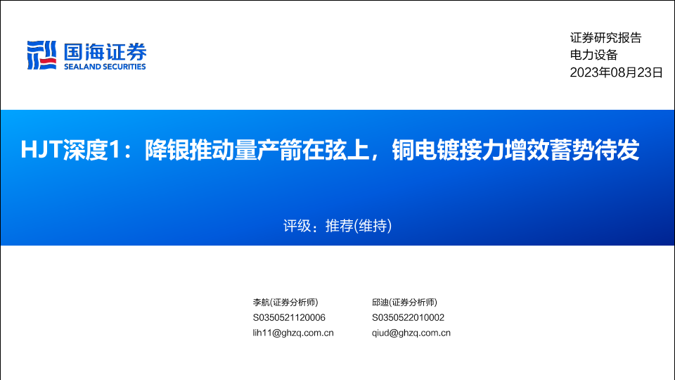 【国海证券】【20230823】HJT深度1:降银推动量产箭在弦上,铜电镀接力增效蓄势待发-35页