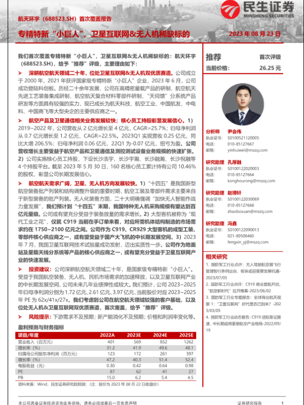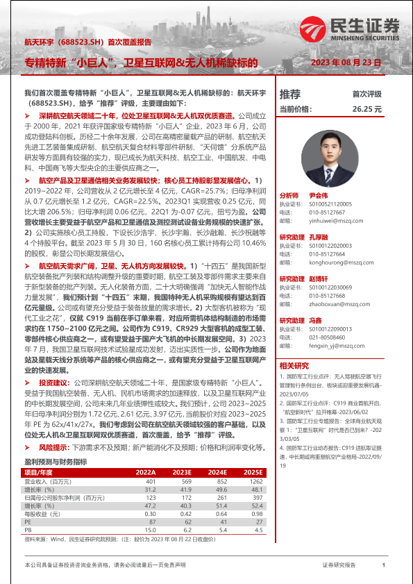 【民生证券】【20230823】航天环宇-688523.SH-首次覆盖报告:专精特新“小巨人”,卫星互联网&无人机稀缺标的-24页
