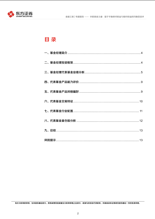【东方证券】【20230824】《FOF系列研究之六十九》:中银基金王睿,擅于平衡绝对收益与相对收益的均衡型选手-14页