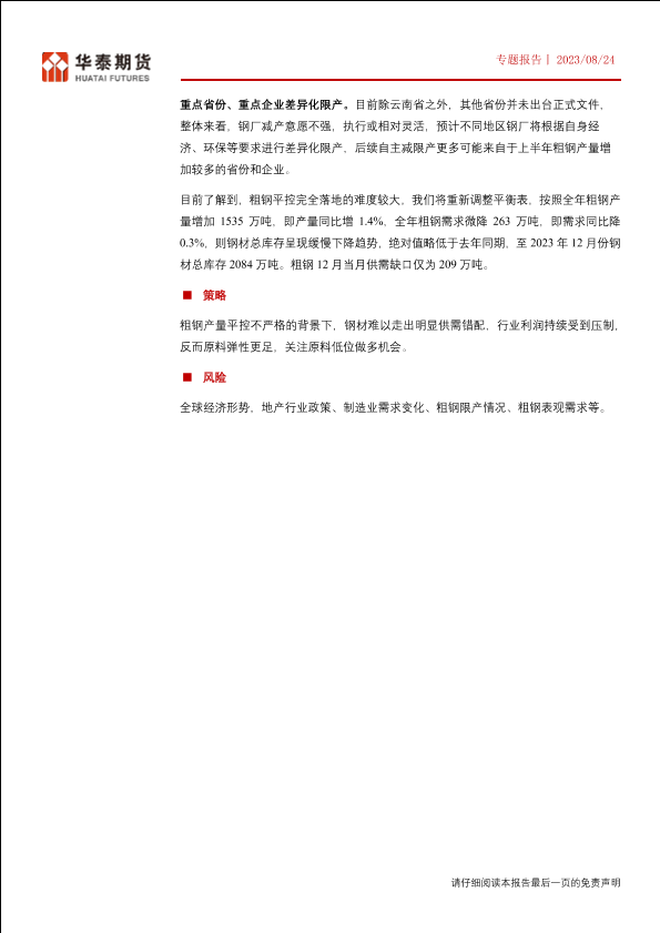 【华泰期货】【20230823】专题报告:平控存不确定性,行业利润持续收缩-16页