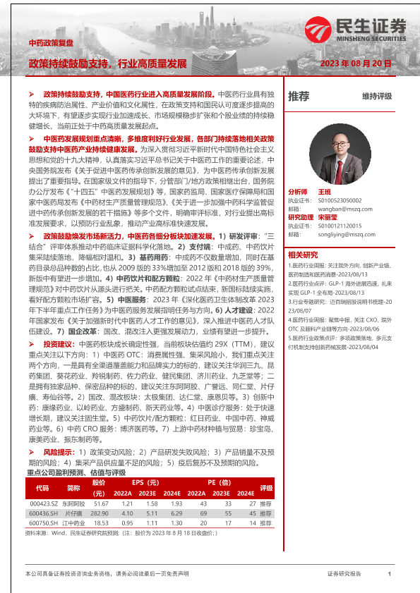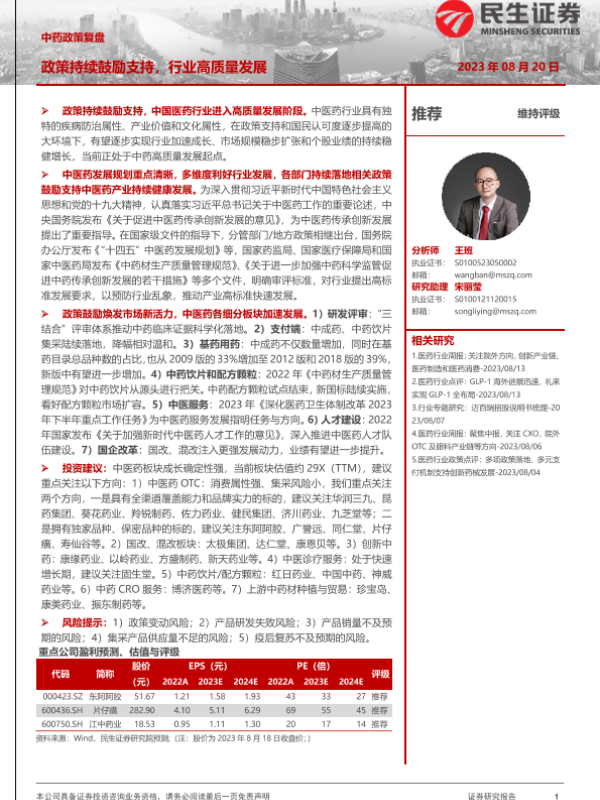 【民生证券】【20230820】中药政策复盘:政策持续鼓励支持,行业高质量发展-29页