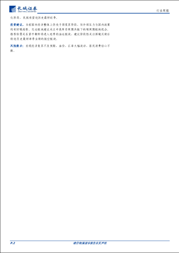 交通运输 油运板块 经济复苏 航空 铁路客运