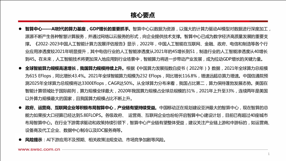 【西南证券】【20230821】人工智能行业专题研究:智算中心,赋能AI产业化、产业AI化-42页