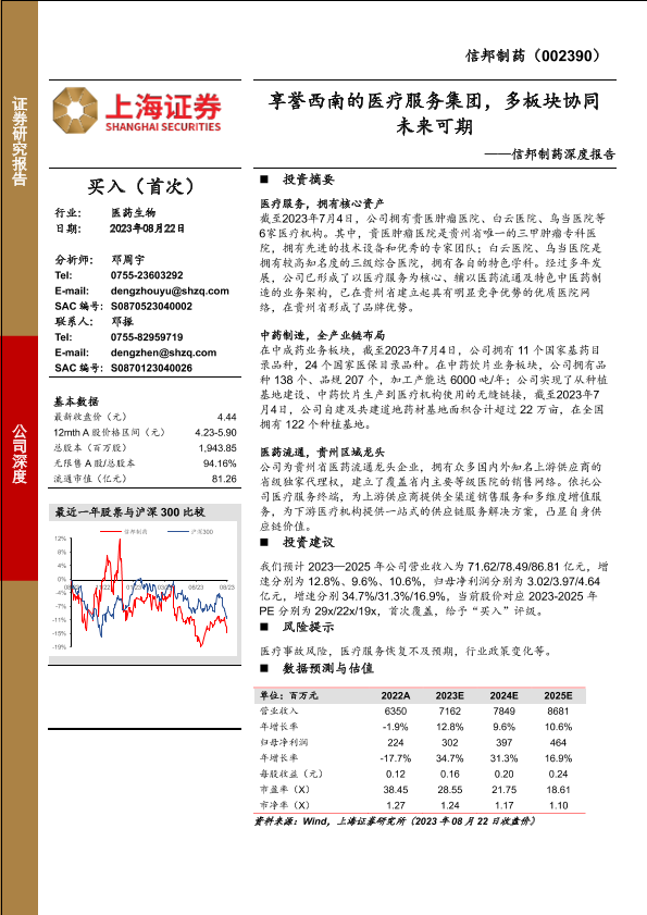 【上海证券】【20230822】信邦制药深度报告(002390):享誉西南的医疗服务集团,多板块协同未来可期-20页