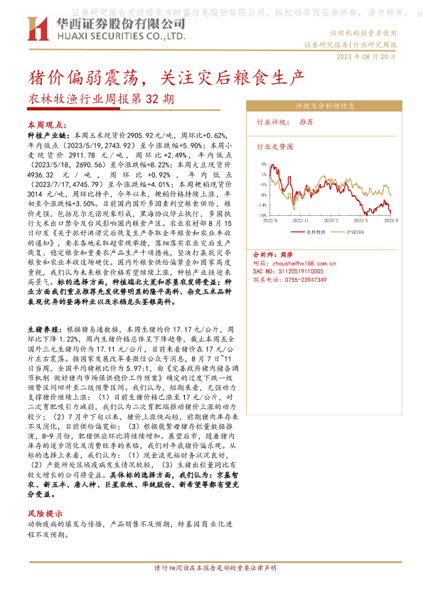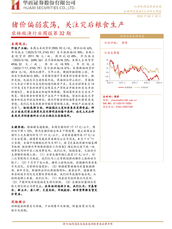 【华西证券】【20230820】农林牧渔行业周报第32期:猪价偏弱震荡,关注灾后粮食生产-25页
