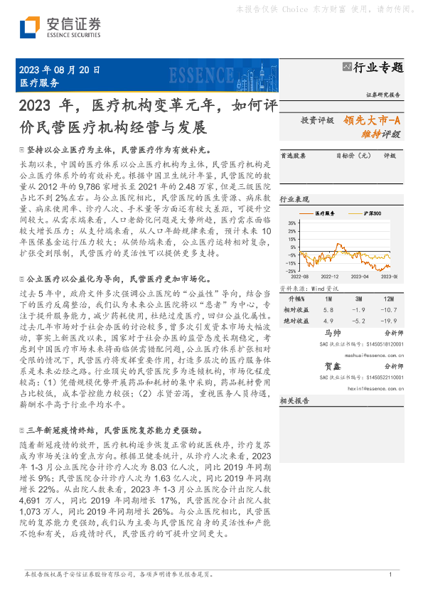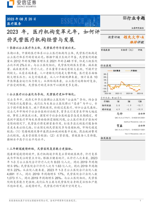 【安信证券】【20230820】2023年,医疗机构变革元年,如何评价民营医疗机构经营与发展-31页