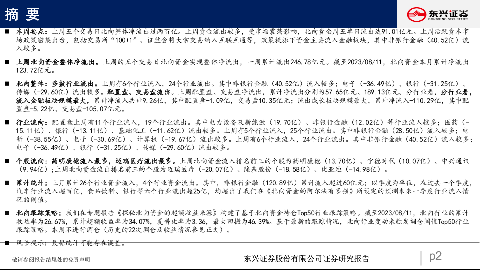 【东兴证券】【20230818】北向资金行为跟踪系列六十八:配置、交易大幅流出-24页