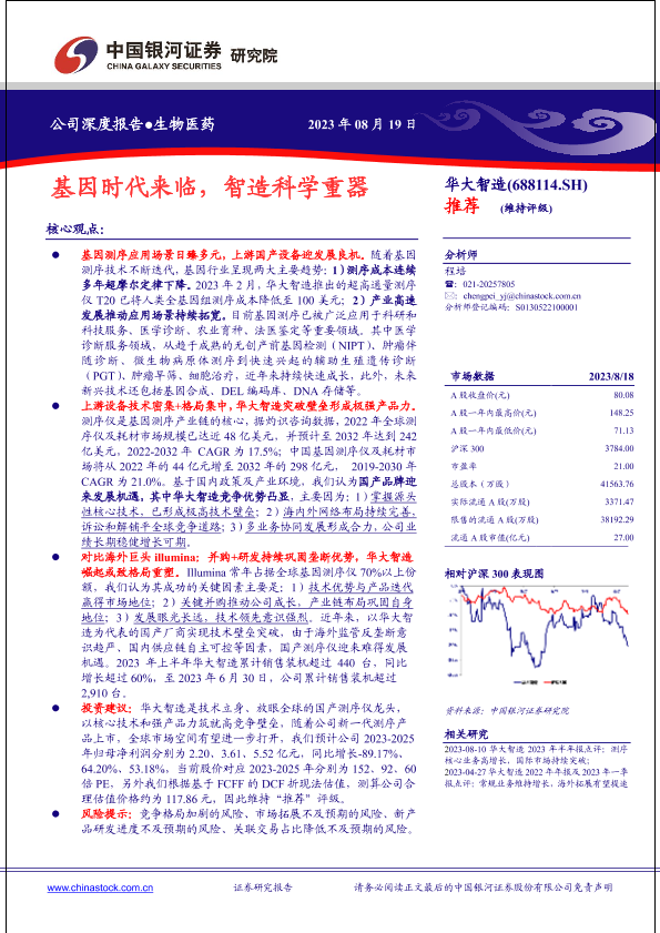 【银河证券】【20230819】华大智造(688114)基因时代来临,智造科学重器-60页