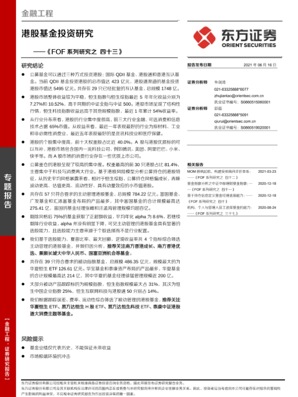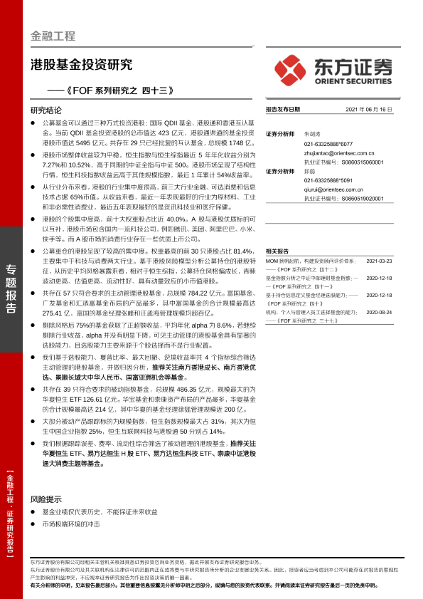 【东方证券】【20210616】《FOF系列研究之四十三》:港股基金投资研究-20页