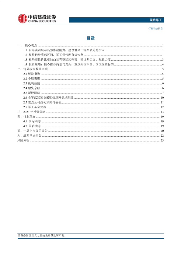 军工景气度 投资策略 板块分析 行业动态 国防军工