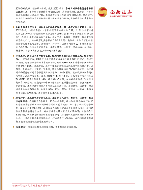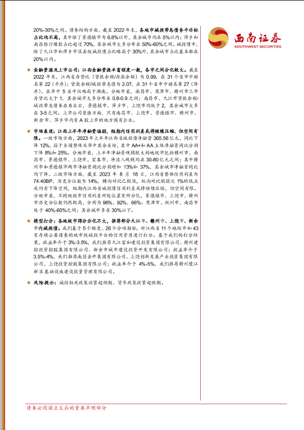 【西南证券】【20230821】城投专题研究:城投债区域研究之江西省-34页
