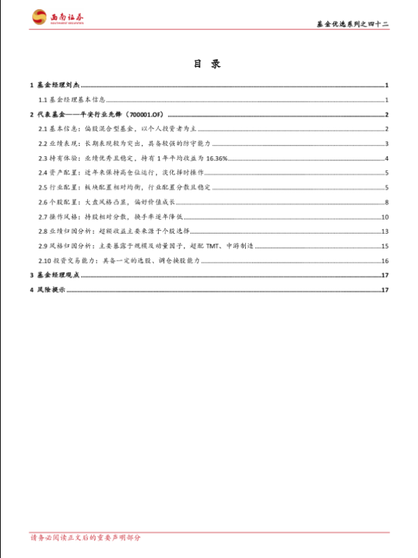 【西南证券】【20230824】基金优选系列之四十二:平安基金刘杰,重视价值深耕成长,控制回撤较强防守-23页