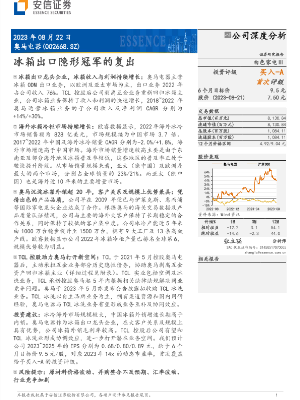【安信证券】【20230822】奥马电器(002668)冰箱出口隐形冠军的复出-41页