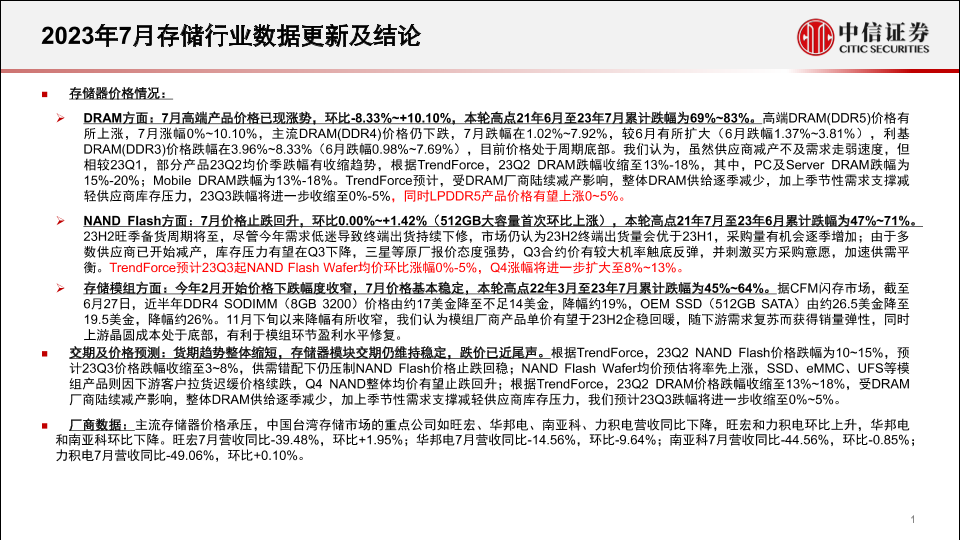 【中信证券】【20230818】存储行业深度追踪系列第4期(2023年7月):部分产品初现涨势,看好23H2板块复苏机遇-37页
