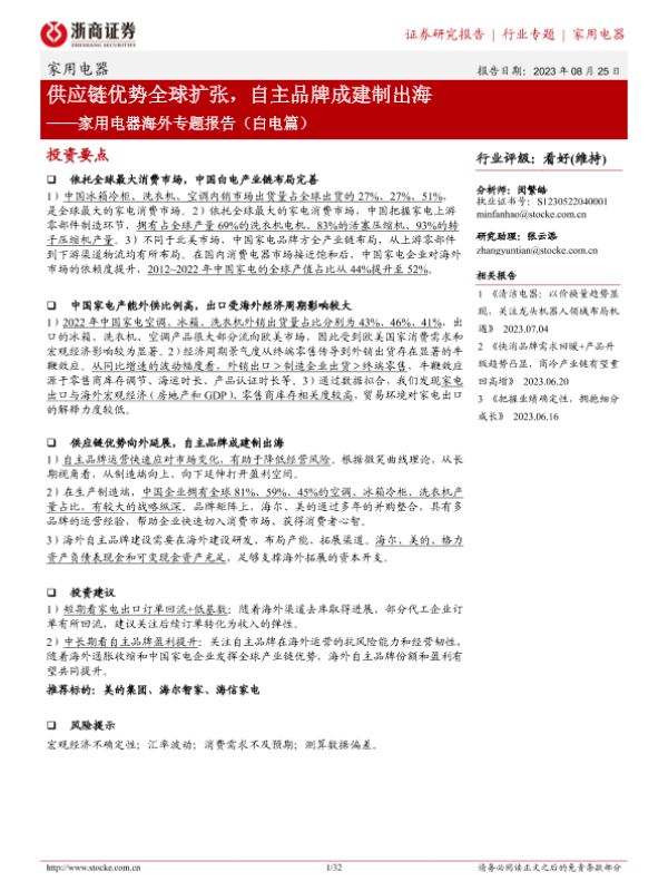 【浙商证券】【20230825】家用电器海外专题报告(白电篇):供应链优势全球扩张,自主品牌成建制出海-32页
