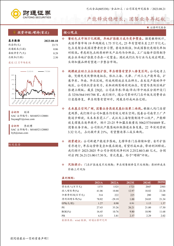 【财通证券】【20230821】巴比食品(605338)产能释放稳增长,团餐业务再起航-28页