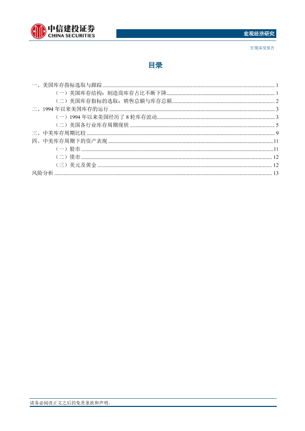中美比较 库存周期 经济研究 资产配置 宏观经济