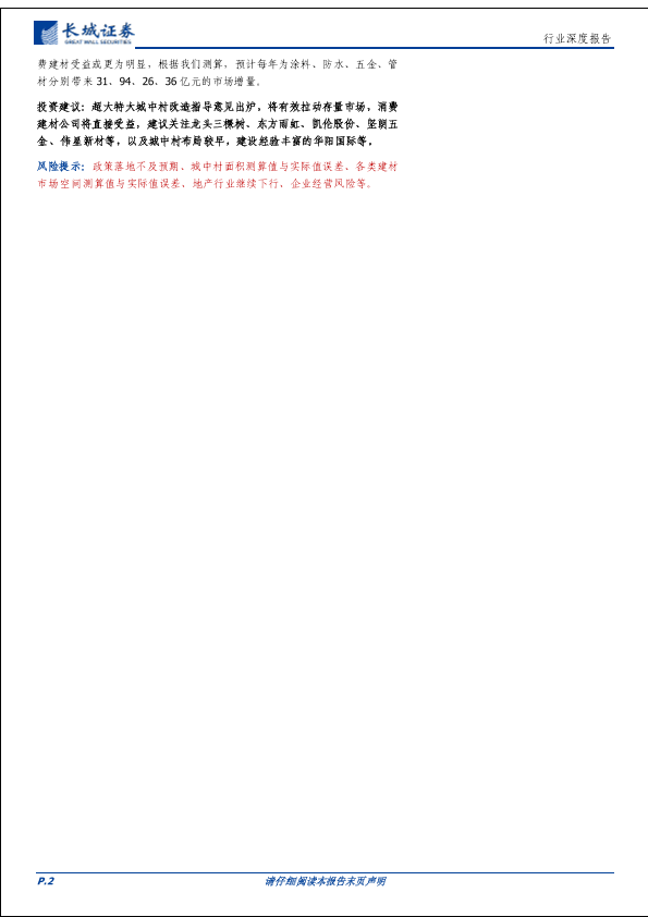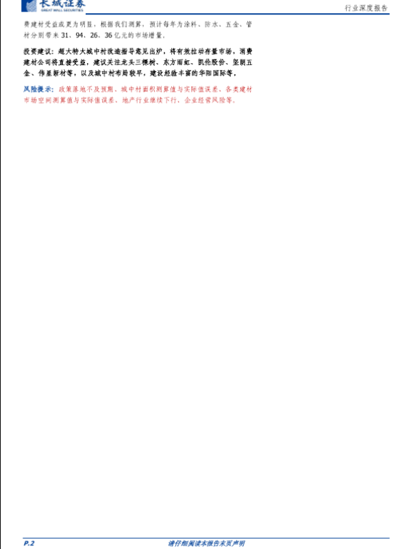 城中村改造 市场增量 建材行业 投资建议 风险提示