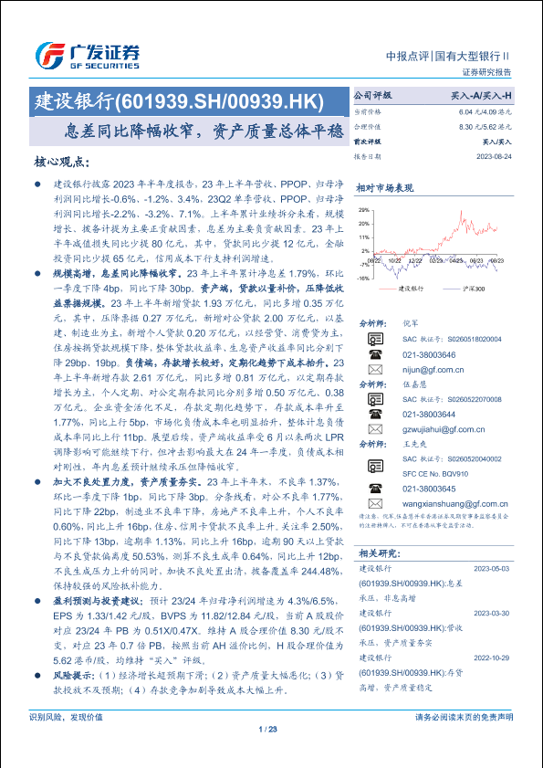 【广发证券】【20230824】建设银行(601939)息差同比降幅收窄,资产质量总体平稳-23页