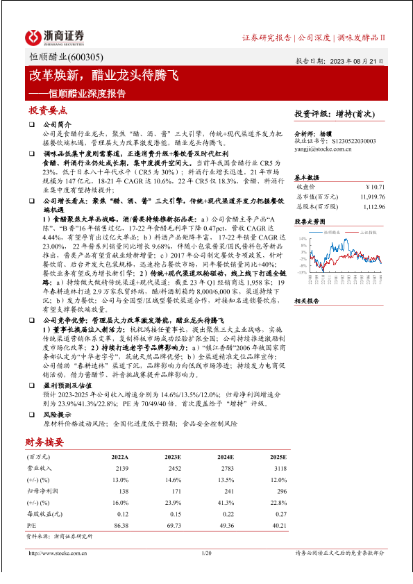 【浙商证券】【20230821】恒顺醋业600305.SH恒顺醋业深度报告:改革焕新,醋业龙头待腾飞-20页