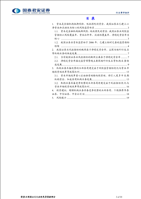 头部券商 机构业务 证券业 资本监管 风险控制指标