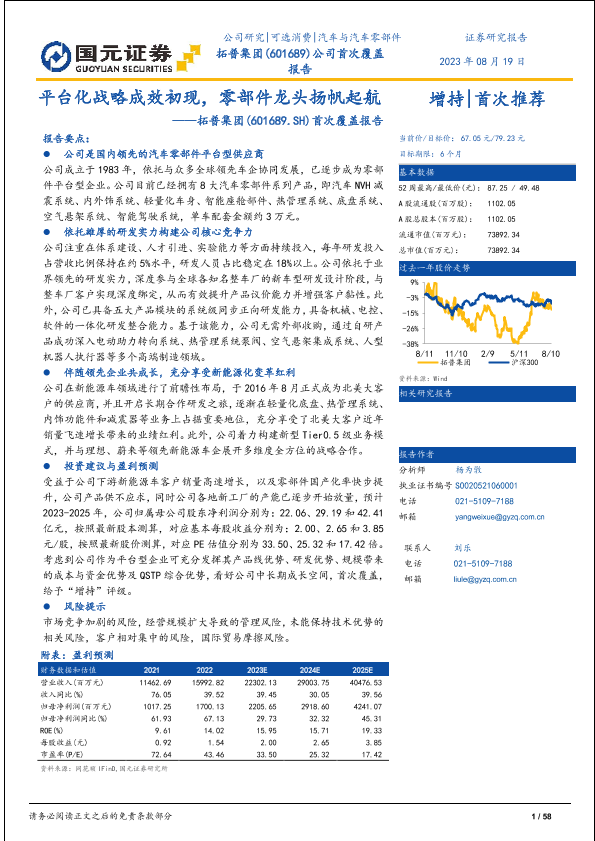 【国元证券】【20230819】平台化战略成效初现,零部件龙头扬帆起航——拓普集团(601689.SH)首次覆盖报告-58页