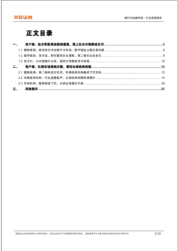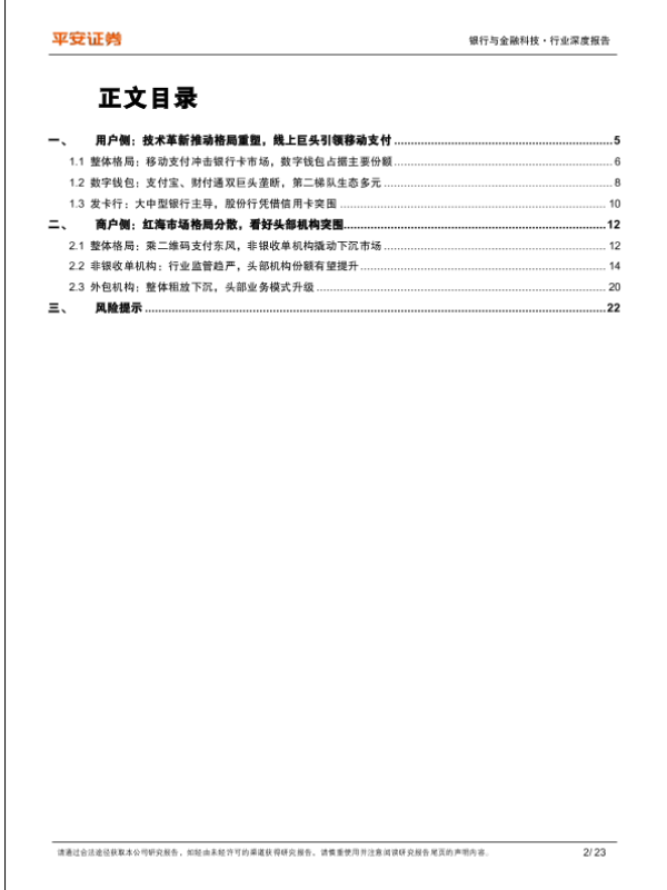 【平安证券】【20230821】支付行业系列研究(二):格局篇,账户侧双鹏并翼,商户侧群雄逐鹿-22页