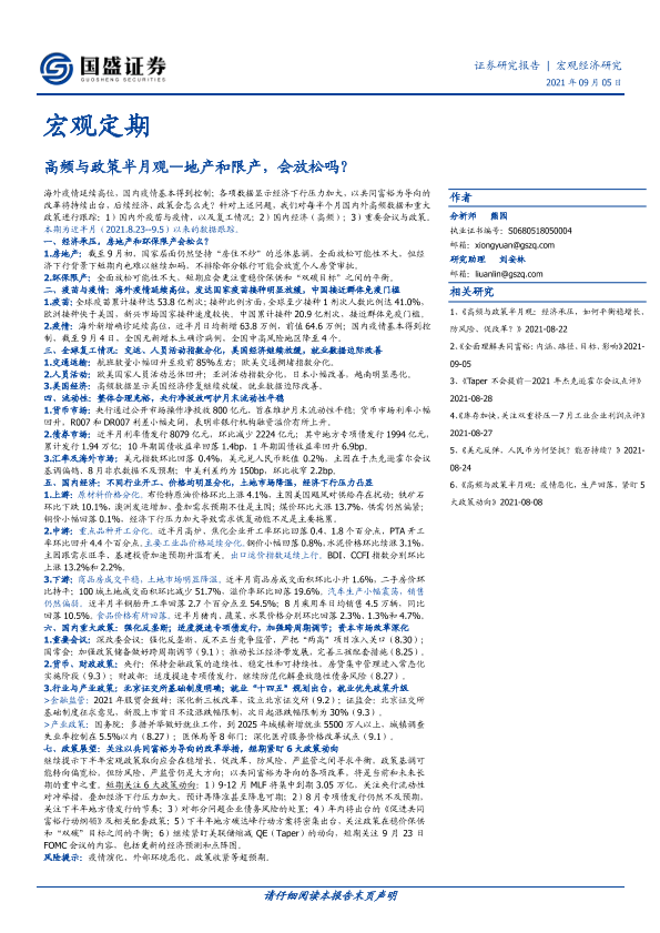 【国盛证券】【20210905】宏观定期:高频与政策半月观,地产和限产,会放松吗?-20页