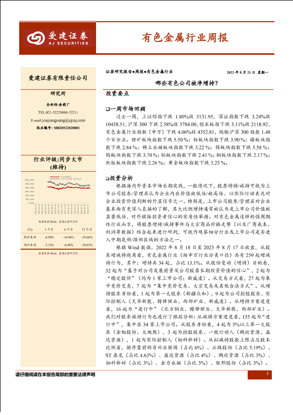【爱建证券】【20230821】有色金属行业周报:哪些有色公司被净增持?-40页