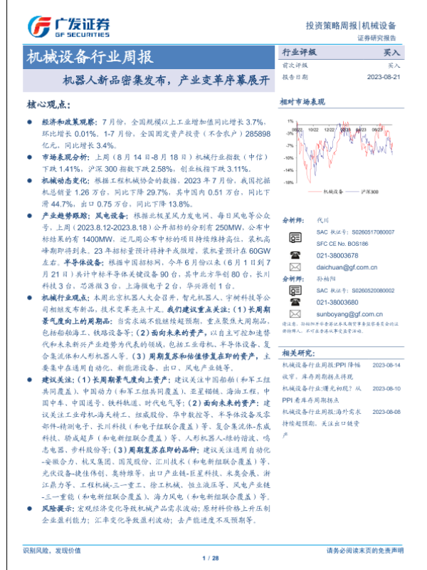 【广发证券】【20230821】机械设备行业周报:机器人新品密集发布,产业变革序幕展开-28页