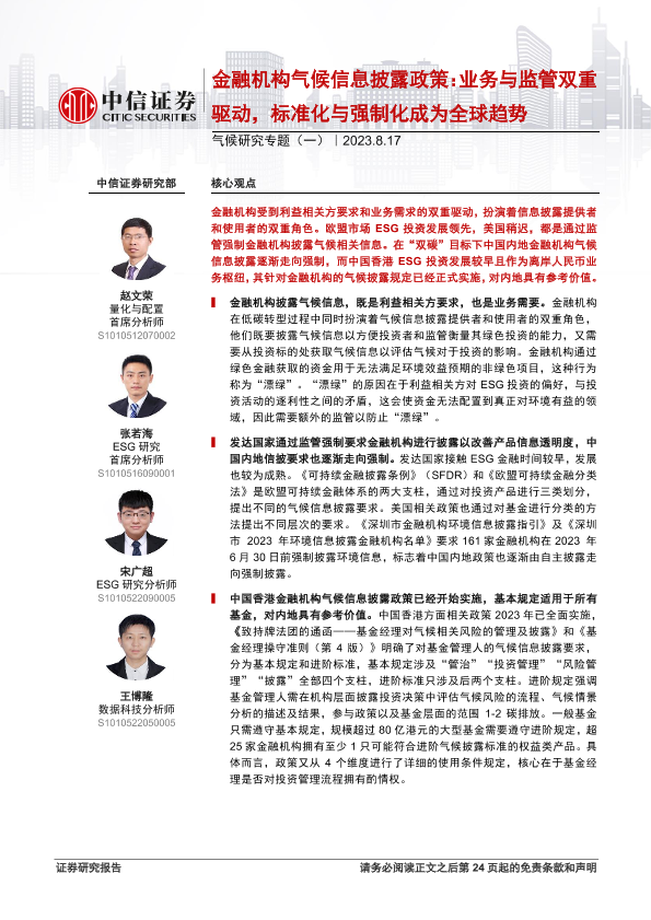 【中信证券】【20230817】气候研究专题(一),金融机构气候信息披露政策:业务与监管双重驱动,标准化与强制化成为全球趋势-25页