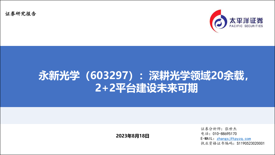 【太平洋证券】【20230818】永新光学(603297)深耕光学领域20余载,2+2平台建设未来可期-32页