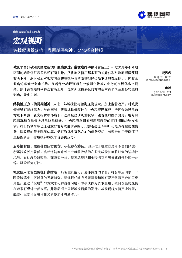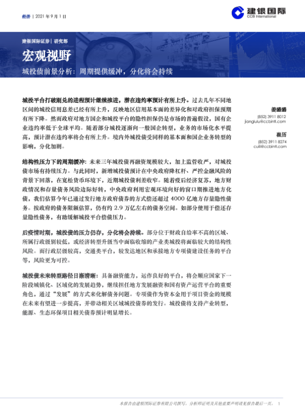【建银国际】【20210901】宏观视野:城投债前景分析,周期提供缓冲,分化将会持续-15页