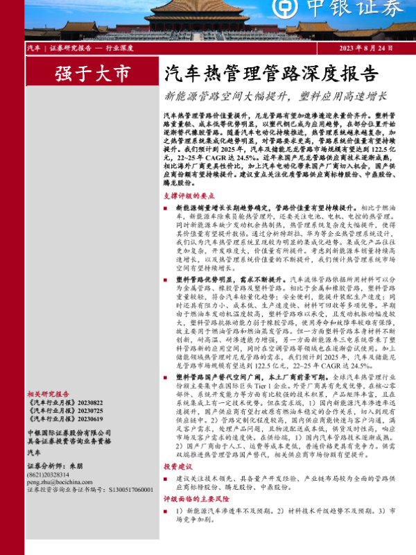 【中银证券】【20230824】汽车热管理管路深度报告:新能源管路空间大幅提升,塑料应用高速增长-31页