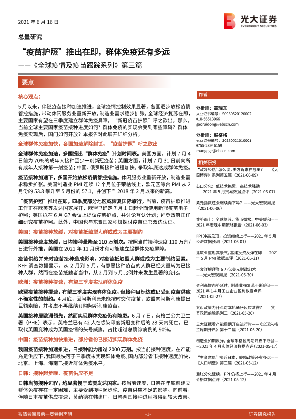 【光大证券】【20210616】全球疫情及疫苗跟踪系列第三篇:“疫苗护照”推出在即,群体免疫还有多远-13页