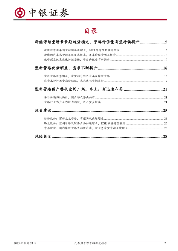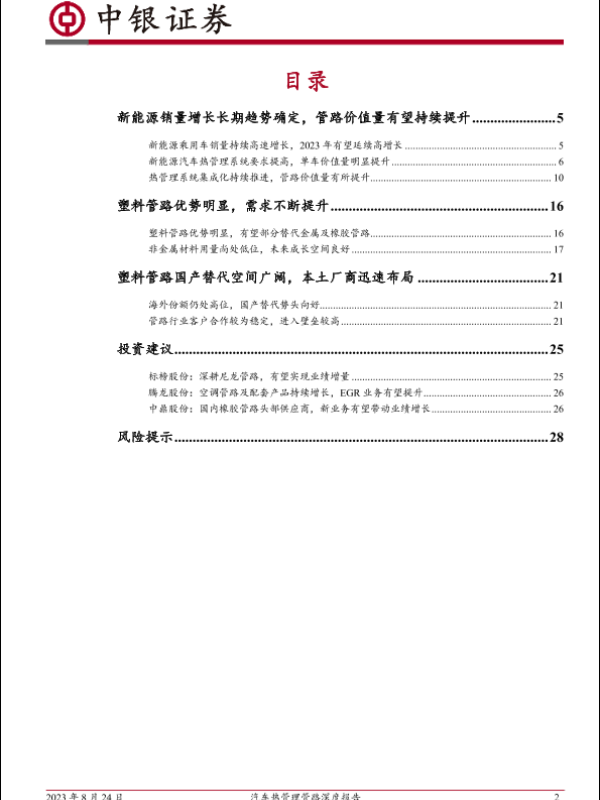 【中银证券】【20230824】汽车行业热管理管路深度报告:新能源管路空间大幅提升,塑料应用高速增长-30页