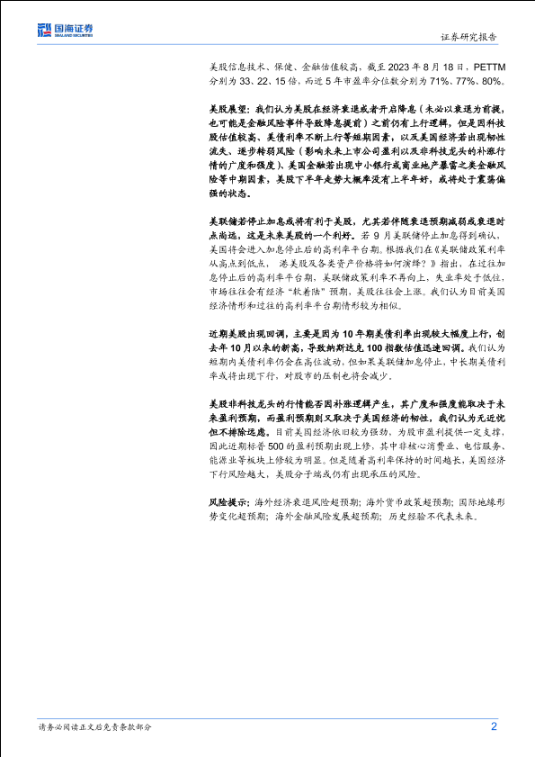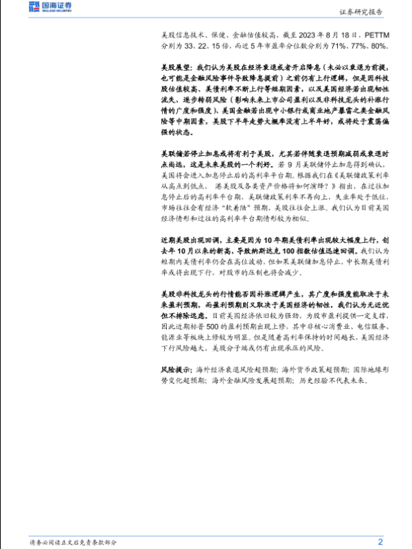 【国海证券】【20230822】海外策略专题研究:如何看待美股的调整和前景?-15页