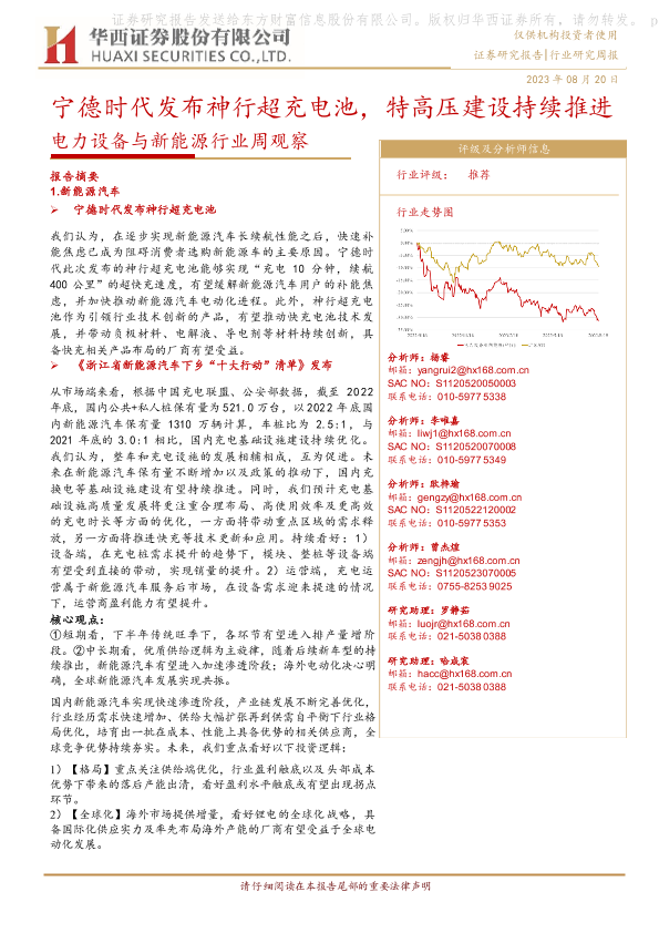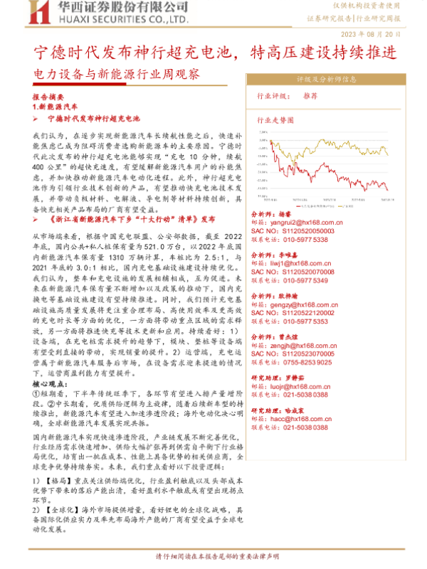 【华西证券】【20230820】电力设备与新能源行业周观察:宁德时代发布神行超充电池,特高压建设持续推进-28页