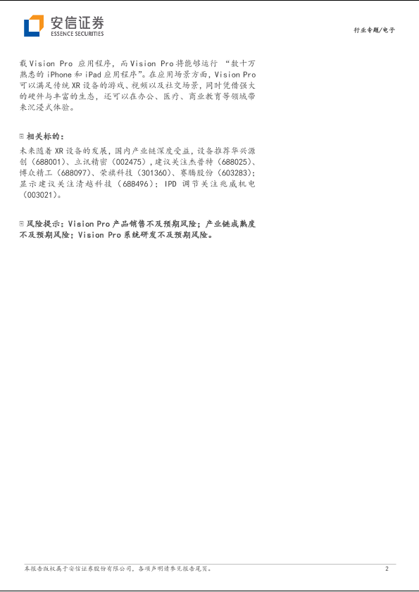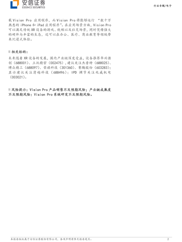 Vision Pro 安信证券 电子行业 空间计算 苹果