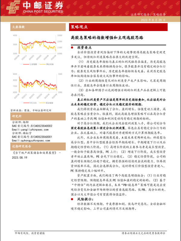 【中邮证券】【20230820】策略观点:高股息策略的指数增强和主观选股思路-20页