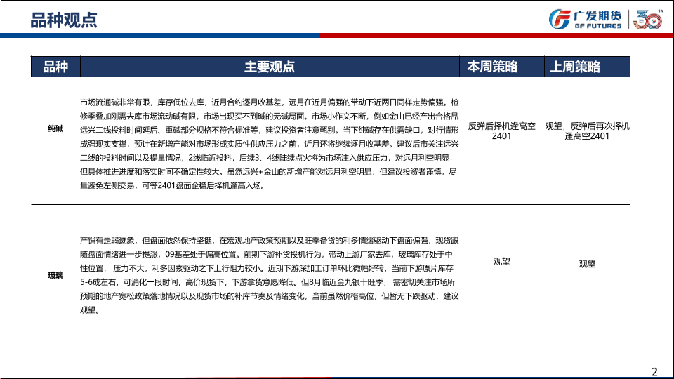 【广发期货】【20230820】纯碱:近月收基差行情,远月等待择机逢高空的机会;玻璃,宏观氛围较暖叠加旺季预期,虽产销走弱但盘面难跌-39页