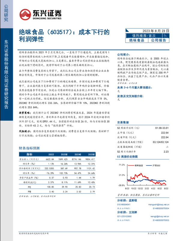 【东兴证券】【20230823】绝味食品:成本下行的利润弹性-19页