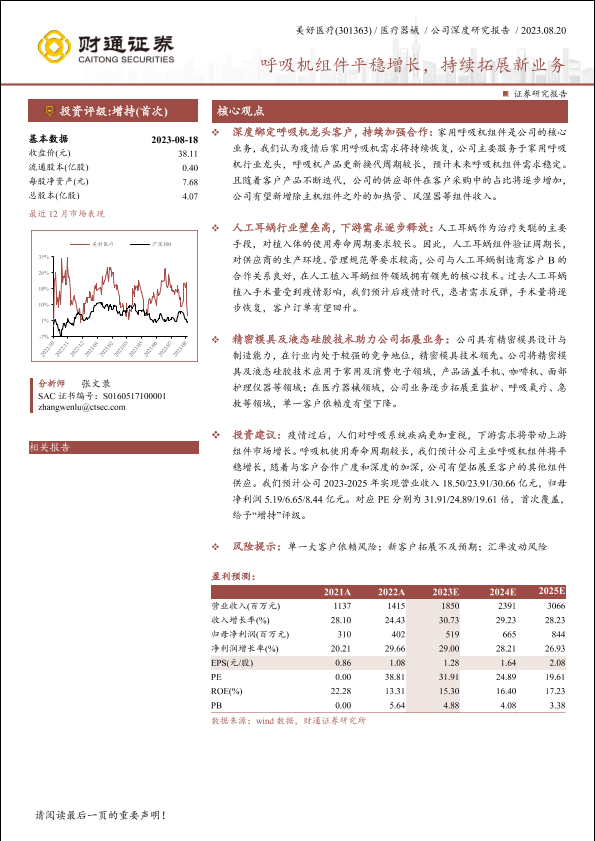 【财通证券】【20230820】美好医疗(301363)呼吸机组件平稳增长,持续拓展新业务-24页