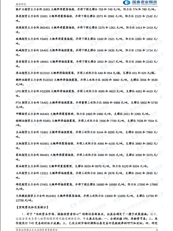 【国泰君安期货】【20230821】股指期货将偏弱震荡,原油期货将偏强震荡,豆粕、菜粕、天然橡胶期货将震荡偏强,螺纹钢、铁矿石期货将震荡偏弱-42页