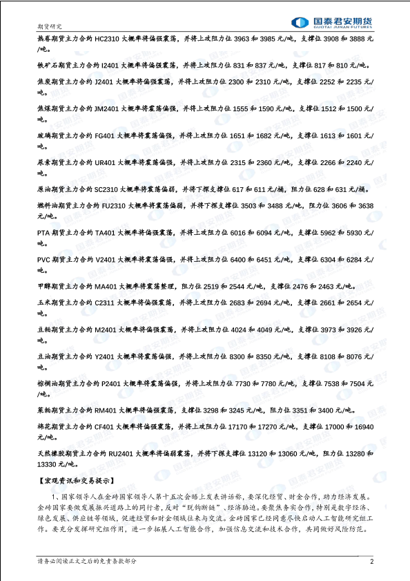 【国泰君安期货】【20230824】股指期货将偏强震荡,黄金、白银、铜、玻璃、尿素期货将震荡偏强,原油期货将震荡偏弱-38页
