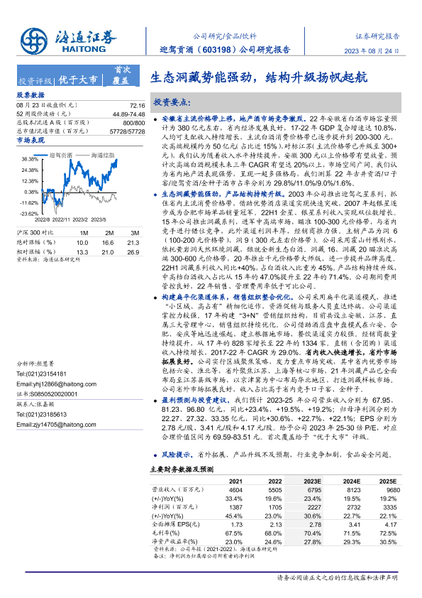 【海通证券】【20230824】迎驾贡酒(603198)生态洞藏势能强劲,结构升级扬帆起航-21页